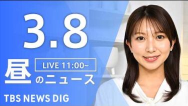 動画 【LIVE】昼のニュース(Japan News Digest Live)最新情報など(3月8日)|TBS NEWS DIG 姉妹ニュースサイト姉妹ニュースサイト2怖い話動画サイトお料理動画サイト修羅場ラバンバ面白動画サイトTBS/JNNニュースから、最新情報をダイジェストでお届けします。▼TBS NEWS DIG 公式サイト▼チャンネル登録をお願いします!▼情報... 2026.03.08 動画