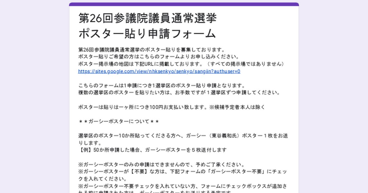 第26回参議院議員通常選挙 ポスター貼り申請フォーム