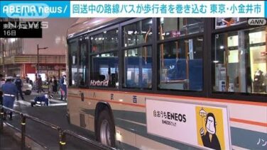 ANN 回送中の路線バスが歩行者を巻き込む事故 東京・小金井市(2023年9月17日) 東京・小金井市で左折しようとした路線バスが横断歩道を渡っていた女性を巻き込む事故を起こしました。女性は重傷とみられています。 16日午後5時すぎ、小金井市本町のJR武蔵小金井駅近くで横断歩道を渡っていた女性が路線バスにひかれる事故がありまし... 2023.09.16 ANN動画