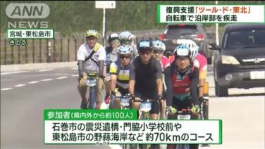 ANN 「ツール・ド・東北」 自転車で宮城沿岸部を疾走(2023年9月17日) 震災の復興支援を目的に宮城県の沿岸を自転車で走る「ツール・ド・東北」が始まりました。 今年で10回目の「ツール・ド・東北」は2日間の日程で行われます。 初日の16日は、県内外から参加したおよそ100人のライダーが石巻市の震災遺構・門脇小学校... 2023.09.16 ANN動画