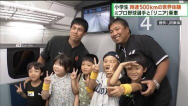ANN 小学生が「リニア」体験乗車 元プロ野球選手と(2023年9月17日) 3連休の初日となった16日、小学生が元プロ野球選手と「リニア中央新幹線」の時速500キロの世界を体験しました。 里崎智也さん:「写真撮るよ」 JR東海の「超電導リニア」に体験乗車したのは、抽選で選ばれたおよそ40人の小学生と里崎智也さんや井... 2023.09.16 ANN動画