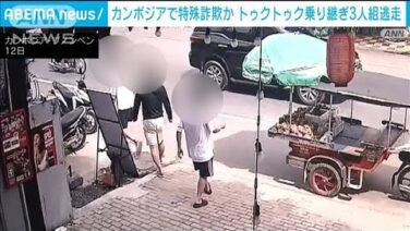 ANN カンボジアで特殊詐欺か 日本人25人拘束 逃走の3人はトゥクトゥク乗り継ぐ(2023年9月17日) カンボジアを拠点に特殊詐欺をしていたとみられる日本人25人が拘束された事件で、逃走を続けている3人はトゥクトゥクを乗り継いで逃げていたことが新たに分かりました。 11日から12日にかけ、カンボジア当局が特殊詐欺の拠点とみられるアパートに踏み... 2023.09.16 ANN動画