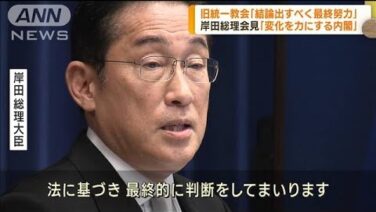 第2次岸田再改造内閣が発足したことをうけ、岸田総理大臣が記者会見に臨み、旧統一教会を巡り「結論を出すべく最終の努力を進める」と強調しました。 岸田総理大臣:「(旧統一教会の)この問題にしっかりと結論を出すべく、最後の、最終の努力を進めて参り...