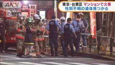 東京・台東区のマンションの一室で火事があり、この部屋から性別の分からない遺体が見つかりました。 6日午後7時半ごろ、台東区根岸にあるマンションの8階の部屋で「煙が出ている」と通り掛かった人が近くの交番に通報しました。 警視庁などによりますと...