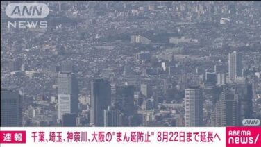 千葉、埼玉、神奈川、大阪の“まん延防止”延長へ(2021年7月7日)