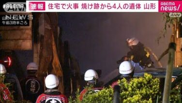 山形県大江町の住宅で火事があり、焼け跡から4人の遺体が見つかりました。 23日午前0時40分ごろ、山形県大江町で「2階建ての住宅が燃えている」と近所の住民から消防に通報がありました。 警察によりますと、火は約5時間後に消し止められましたが、...