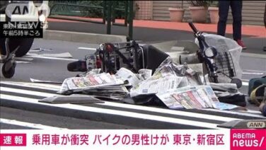 【速報】新聞配達中のバイクに乗用車が衝突 18歳男性けが 東京・新宿区(2024年5月23日)