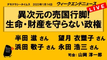 【今週のテーマ】プラス1 コロナ5類へ移行・「異次元の少子化対策」って何?・国会23日開会へ・日銀の先送りと冷えこむ経済【出演】 荻原 博子さん (経済ジャーナリスト) 白井 聡さん (政治学者、京都精華大学准教授) 志田 陽子さん (憲法...