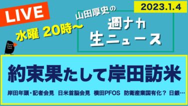 毎週水曜 20時〜山田厚史の週ナカ生ニュース<気になるニュース>・年頭所感 積み残し解消、防衛力と新しい資本主義・記者会見 賃上げに意欲、増税前解散は首相専決事項・訪米、13日バイデンと首脳会談、防衛力整備をご報告・不人気の中での統一地方選...