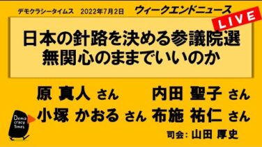 7月10日は参院議員選挙 投票日。与党・野党について様々な角度から語ります。過去の政治のウラ話も…今月も自由な3人の放談をお楽しみください2022年6月28日 ライブ配信..............................◆デモクラ...
