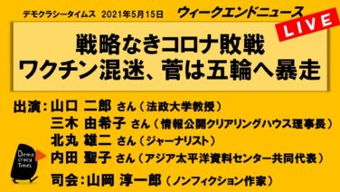 今週のテーマ・コロナ敗戦~ワクチン混迷・野党は国会で何を?・議論なきデジタル改革6法案の成立・米国のワクチン特許放棄、反発する欧州出演は 山口 二郎さん (法政大学教授)    三木 由希子さん (情報公開クリアリングハウス理事長)    ...