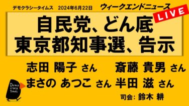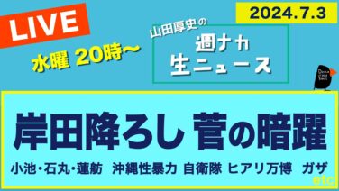毎週水曜 20時〜山田厚史の週ナカ生ニュース<気になるニュース>・都知事選、既存政党はバツ 見えたか? 新しい芽・ずさん自衛隊、秘密・手当・投棄 予算は余る 人は足りない・5月基本給2.5%増でも実質賃金26ヶ月連続減少、倒産増加・円安16...