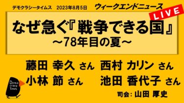 【今週のテーマ】・戦争させない覚悟・万博・カジノと維新政治・沸騰する地球、どう生き残る?【出演】 北丸 雄二さん (ジャーナリスト) 三木 由希子さん (情報公開クリアリングハウス理事長) 宮崎 園子さん (ジャーナリスト、元朝日新聞記者)...